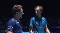 羽联总决赛赛前 李梓嘉赞对手周天成体能管理佳.